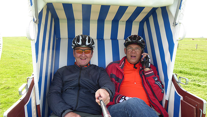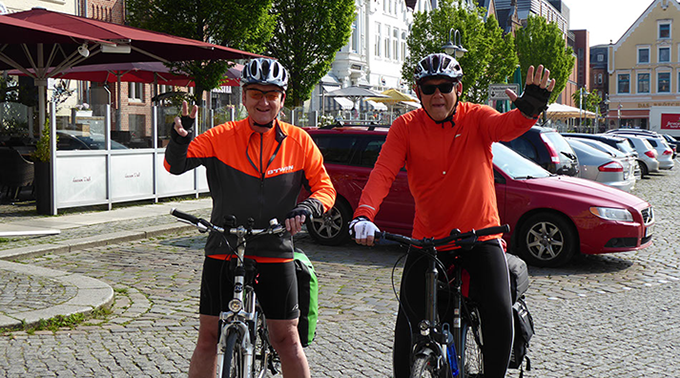 Entstanden ist diese Idee im vorangegangenen Jahr, als Kai anmerkt, dass er immer nur auf der Autobahn nach Sylt fährt. Warum nicht mal mit dem Fahrrad an der Küste entlang? Und dann die Inseln besuchen? Im Mai haben Kai und Carsten mit den Rädern die nordfriesischen Inseln, also Pellworm, Hallig Langeneß, Hallig Hooge, Amrum, Föhr und natürlich auch Sylt erkundet. Ausgangspunkt ist Husum in Schleswig-Holstein und dann geht es in Richtung Norden entlang des "Nordsee Küstenradweges". Verschiedene Fähren bringen uns zu den einzelnen Inseln.