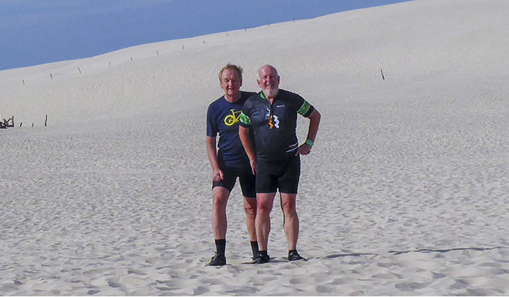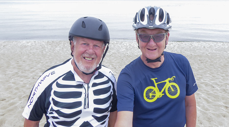 Zwei radler am einsamen Strand auf Hel