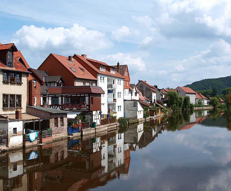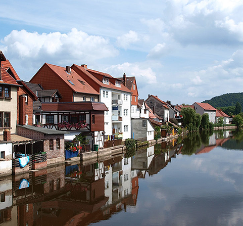 Von Bad Sooden-Allendorf kommend geht es an der Werra entlang in die hessische Fachwerkperle Eschwege. Radler, die wie wir nach Eisenach wollen, nehmen in Hörschel, dem Ort des Rennsteigbeginns, den Herkules-Wartburg-Radweg.