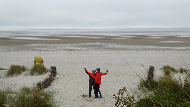 Entstanden ist diese Idee im vorangegangenen Jahr, als Kai anmerkt, dass er immer nur auf der Autobahn nach Sylt fährt. Warum nicht mal mit dem Fahrrad an der Küste entlang? Und dann die Inseln besuchen? Im Mai haben Kai und Carsten mit den Rädern die nordfriesischen Inseln, also Pellworm, Hallig Langeneß, Hallig Hooge, Amrum, Föhr und natürlich auch Sylt erkundet. Ausgangspunkt ist Husum in Schleswig-Holstein und dann geht es in Richtung Norden entlang des "Nordsee Küstenradweges". Verschiedene Fähren bringen uns zu den einzelnen Inseln.