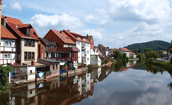 Von Bad Sooden-Allendorf kommend geht es an der Werra entlang in die hessische Fachwerkperle Eschwege. Radler, die wie wir nach Eisenach wollen, nehmen in Hörschel, dem Ort des Rennsteigbeginns, den Herkules-Wartburg-Radweg.